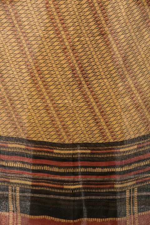 PRODUCT: Vegetable dyed yellow maheshwari dupatta with dabu printing.